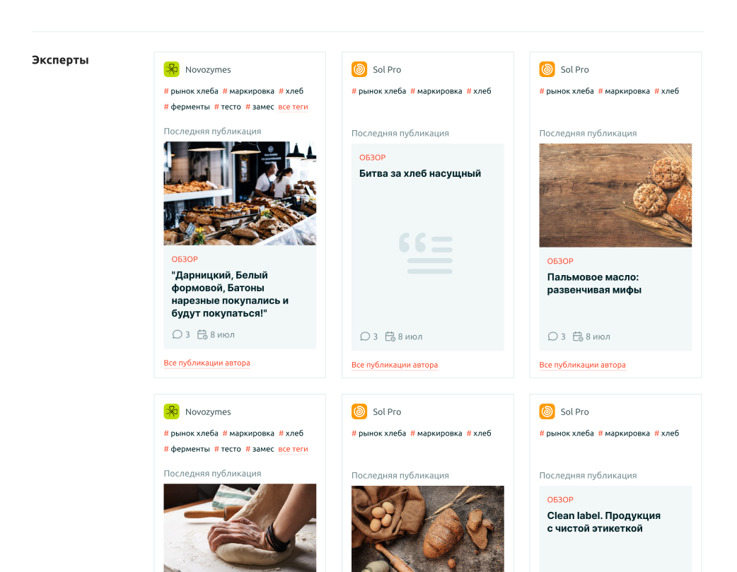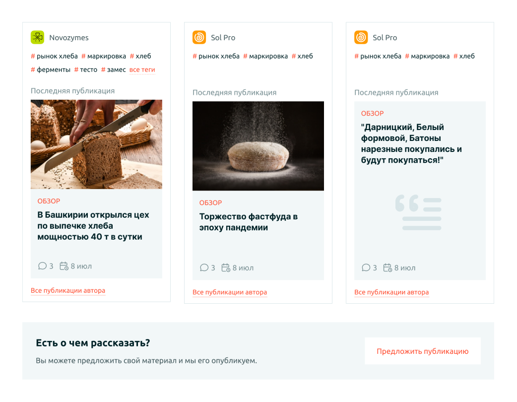 Рекламные партнеры пишут статьи с разной частотой. Чтобы публикации редко пишущих партнеров не терялись в ленте, за каждым партнером закреплено место на главной странице, где выводится его последняя статья