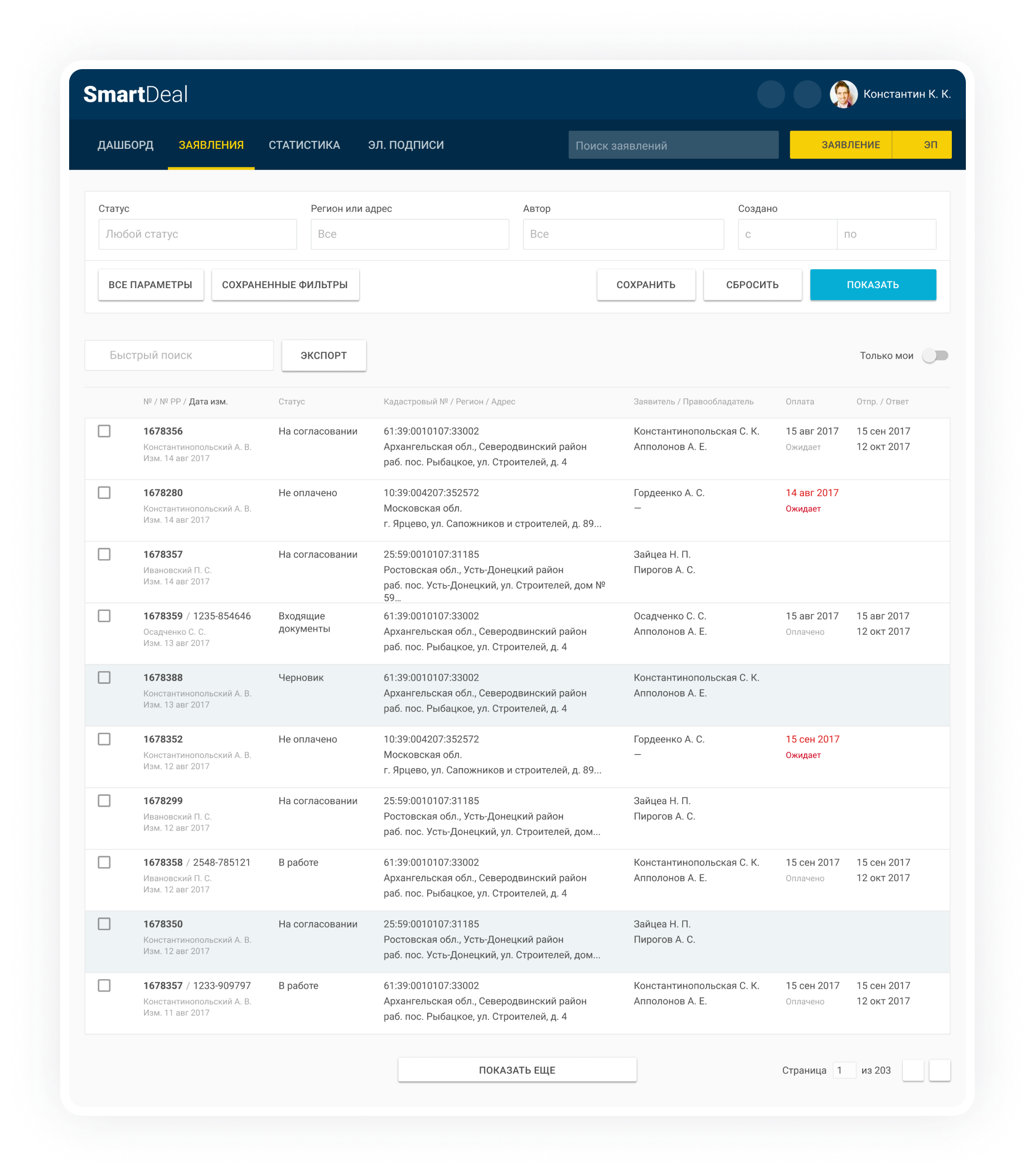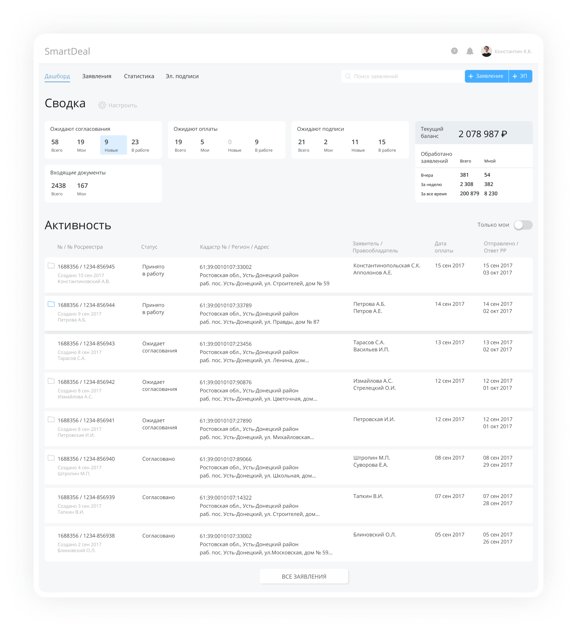 Наш заказчик решил исправить эту ситуацию и разработать профессиональный сервис для работы с заявлениями в Росреестр.
