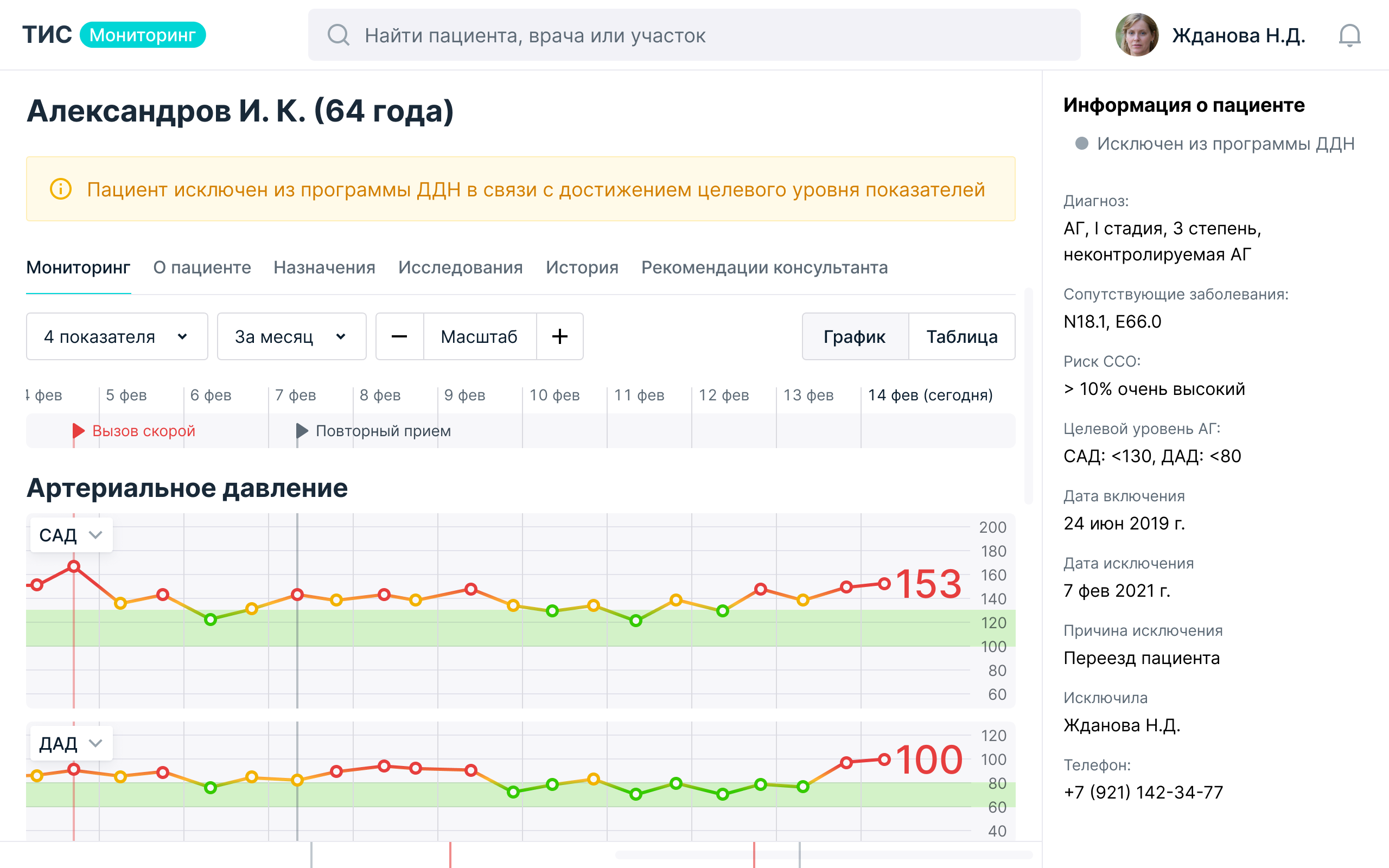 У ТИС есть целевой показатель — это снижение количества случаев инсульта и инфаркта у пациентов, находящихся на дистанционном диспансерном наблюдении (ДДН)