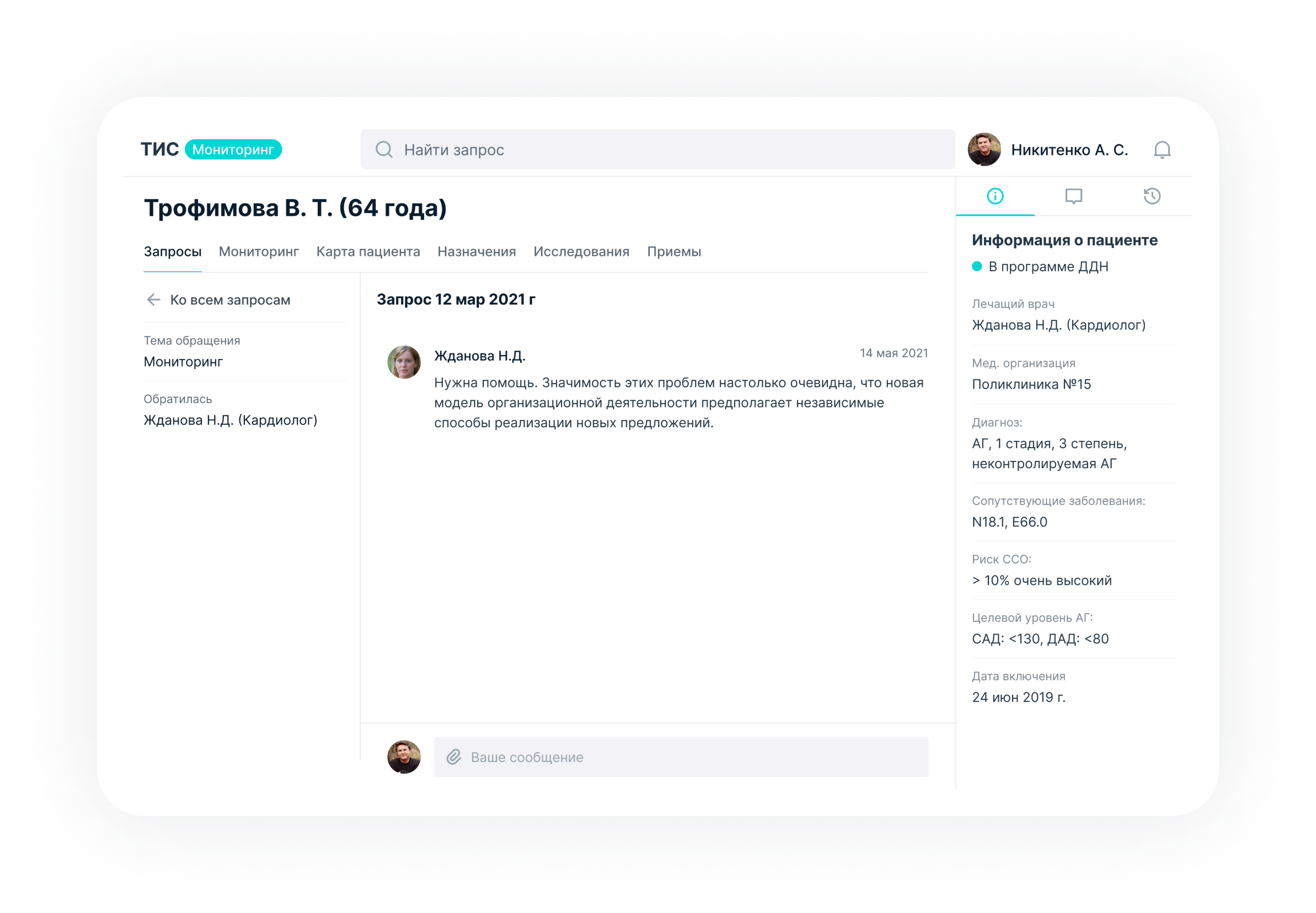 ТИС (телемедицинские информационные системы) — команда, которая создает программное обеспечение для дистанционного диспансерного наблюдения (ДДН) пациентов с сердечно-сосудистыми заболеваниями. Бизнес-задача компании — включить в систему ДДН к 2024 году до 70% состоящих на диспансерном наблюдении россиян.