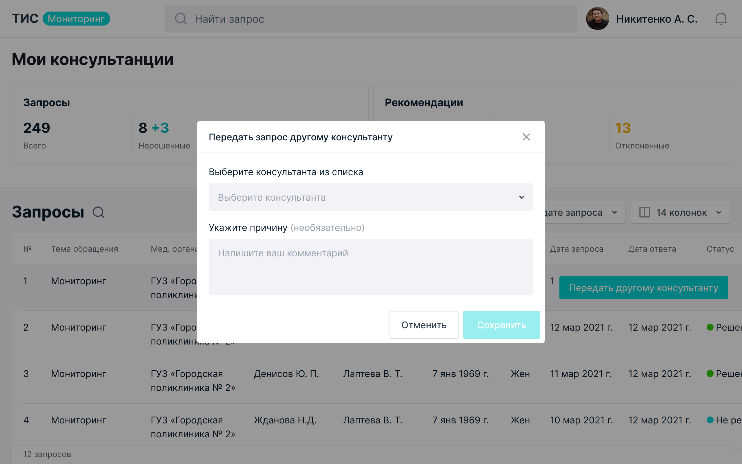 У врачей уже есть Региональная медицинская информационная система (РМИС). Чтобы не грузить их еще одной, после совместного обсуждения с заказчиком мы решили встроить «ТИС Самоконтроль» в РМИС отдельным модулем. То есть подсистемой, в которую врач прямо из РМИС сможет войти в любой момент.