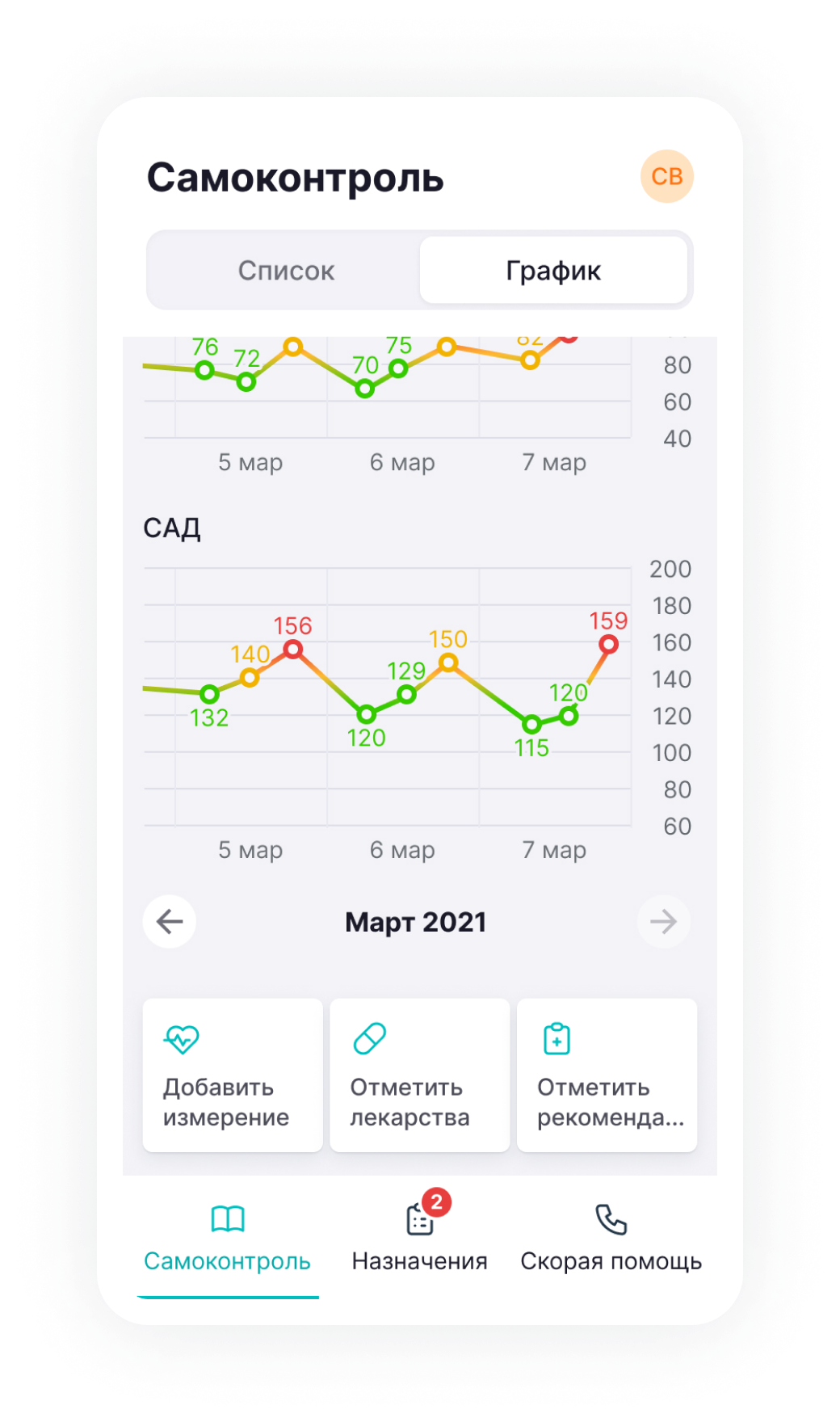 Она взаимодействует с его мобильным приложением, в нее попадают все результаты измерения давления. По ней врач будет дистанционно наблюдать и корректировать процесс лечения. Динамику изменения давления покажут графики.